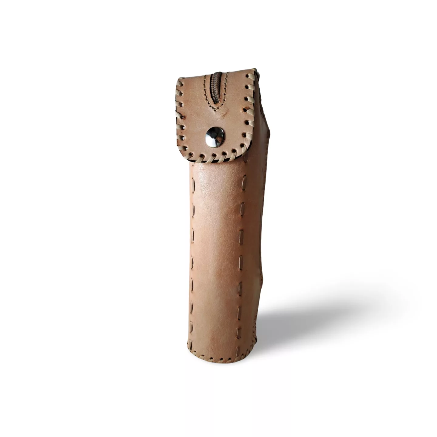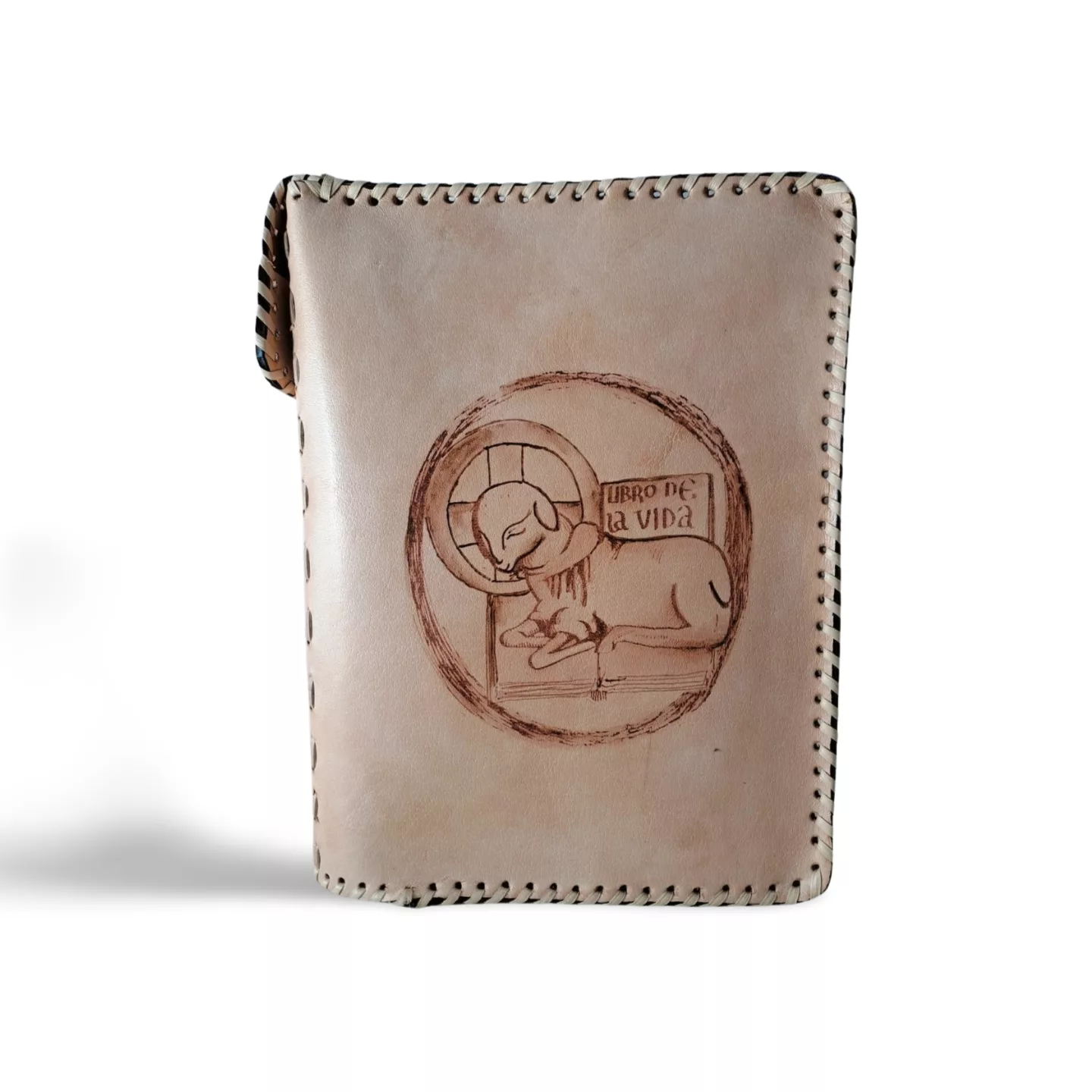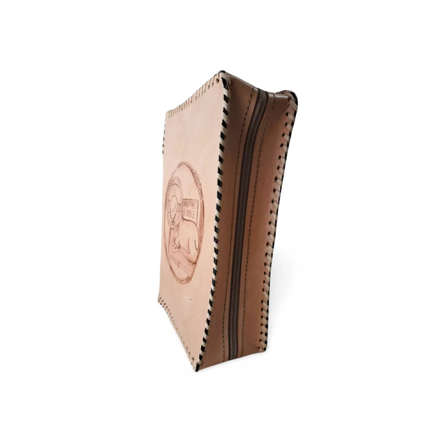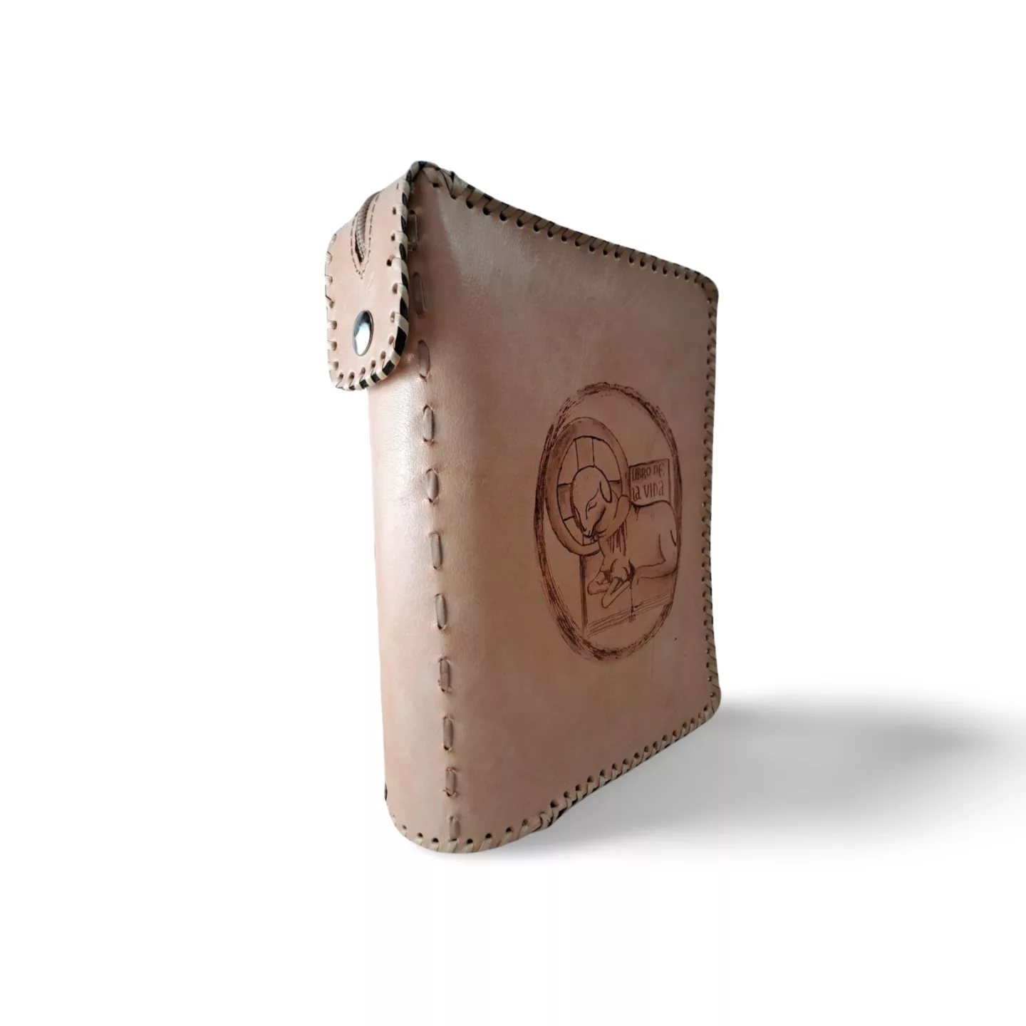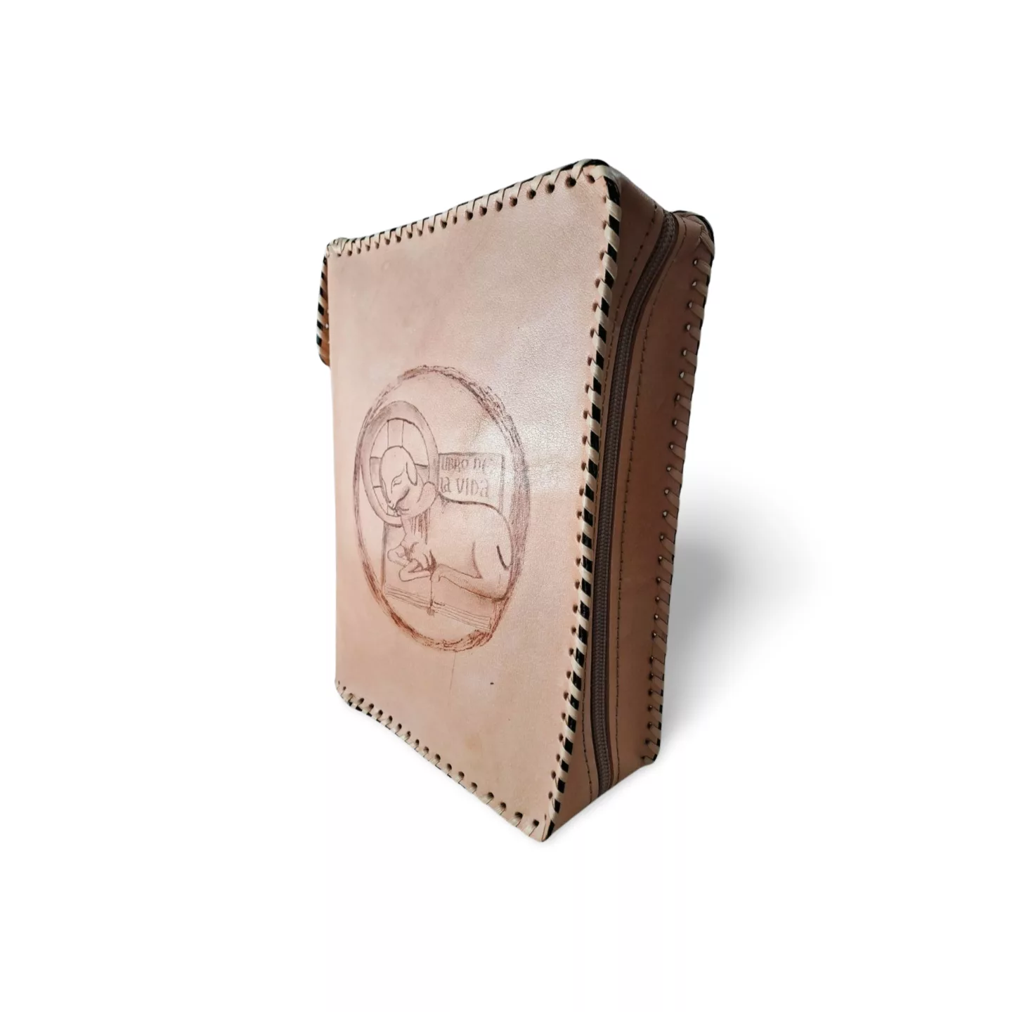 Hecha para quienes aman la fuerza del cuero en su estado más puro, esta funda artesanal de cuero rústico combina carácter y tradición. Cada pieza es cortada, grabada y cosida a mano, empleando tireta de cuero oscuro para reforzar tanto el cuerpo como el lomo, siguiendo técnicas tradicionales que garantizan firmeza y durabilidad. Su estructura más rígida y su cierre de cremallera protegen tu libro de oración con elegancia y sencillez. En la portada, pirograbado a mano de la Angel Custodio . Cierre de la funda con broche a presión.