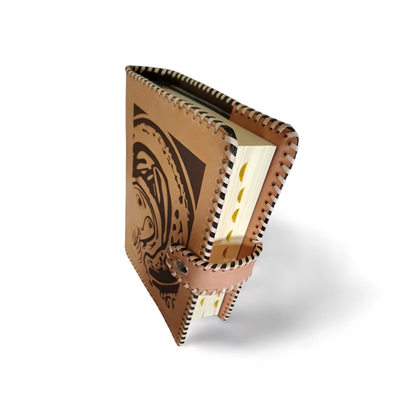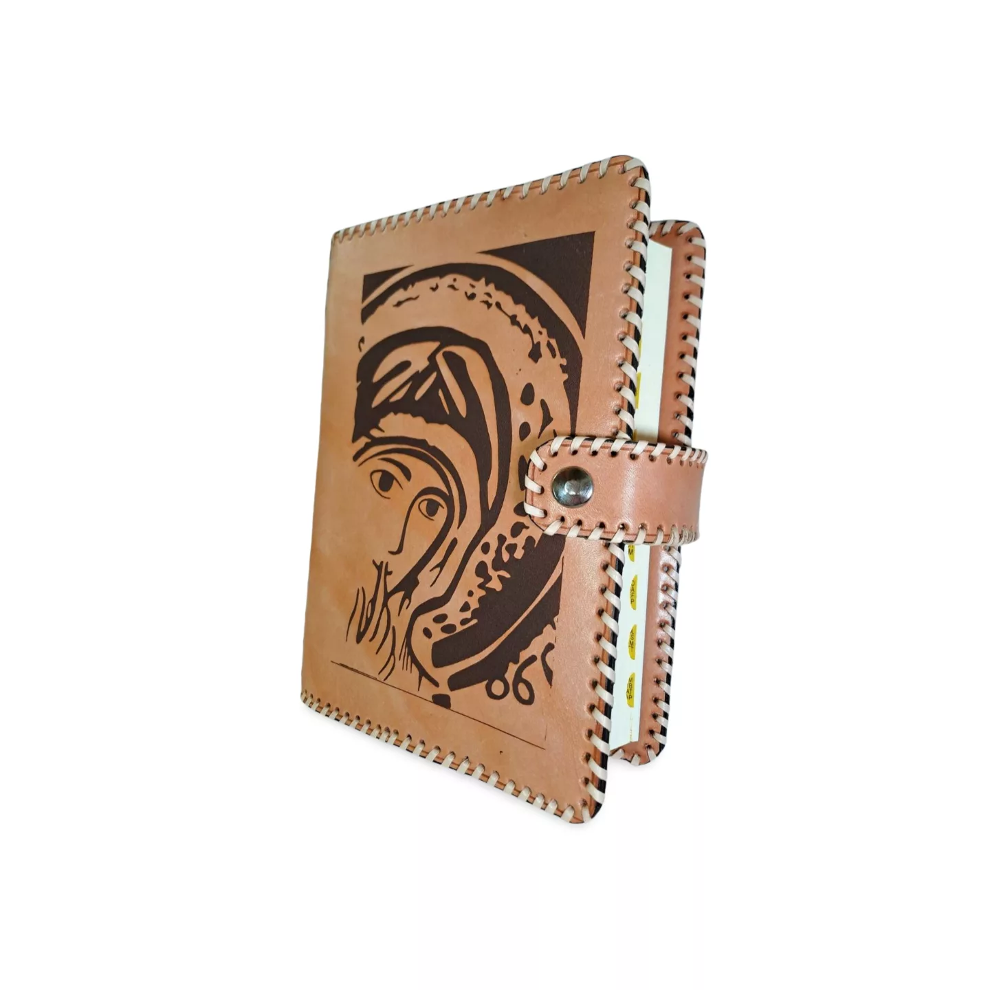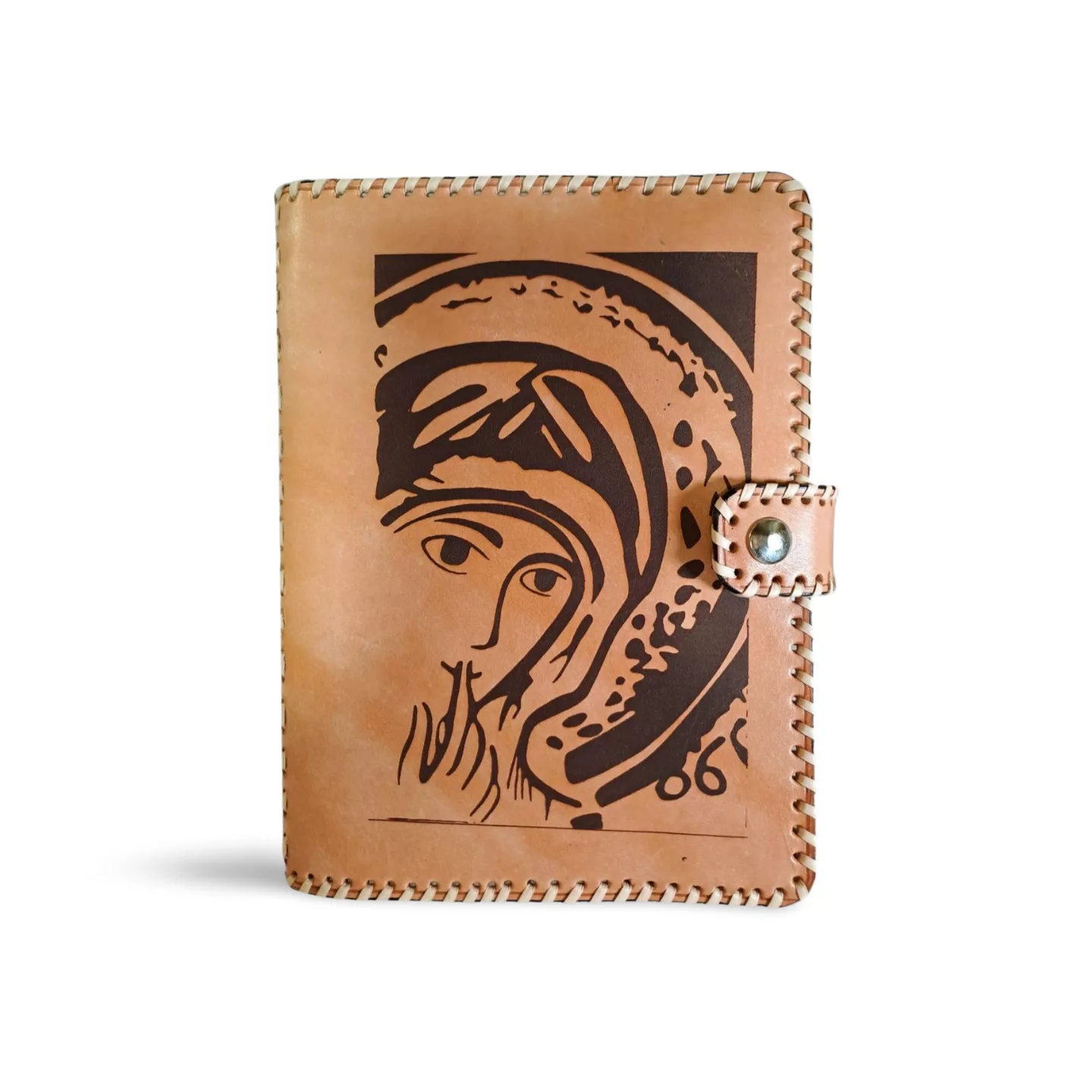 Hecha para quienes aman la fuerza del cuero en su estado más puro, esta funda artesanal de cuero rústico combina carácter y tradición. Cada pieza es cortada, grabada y cosida a mano, empleando tireta de cuero oscuro para reforzar tanto el cuerpo como el lomo, siguiendo técnicas tradicionales que garantizan firmeza y durabilidad. Su estructura más rígida y su cierre de cremallera protegen tu libro de oración con elegancia y sencillez. En la portada, pirograbado a mano de la Virgen del Silencio. Cierre de la funda: broche a presión.