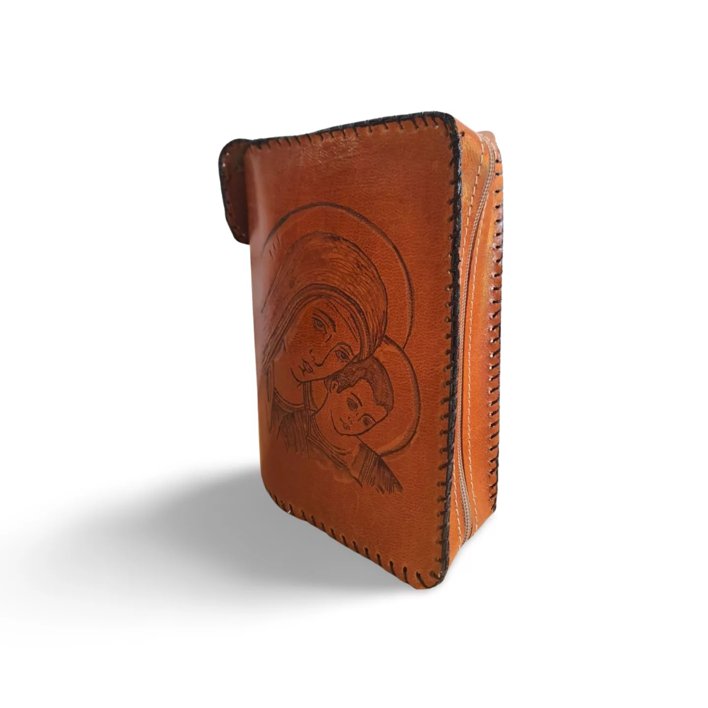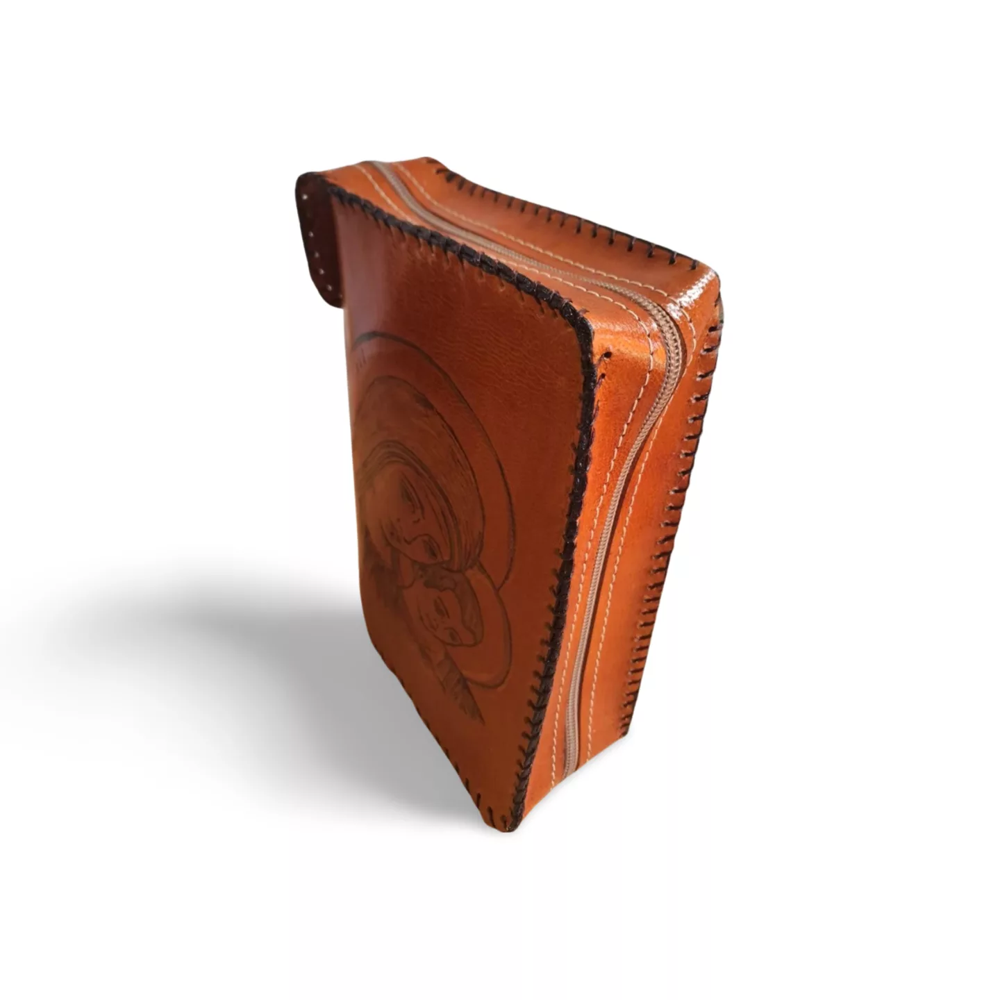 Elaborada a mano en cuero de alta calidad y cosida con tireta marrón, esta funda protege tu salterio con cierre de cremallera y forro interior reforzado. Personalizable con grabado “Virgen del Camino” y hecha a medida, combina tradición, funcionalidad y estilo, convirtiéndose en una pieza única y duradera.