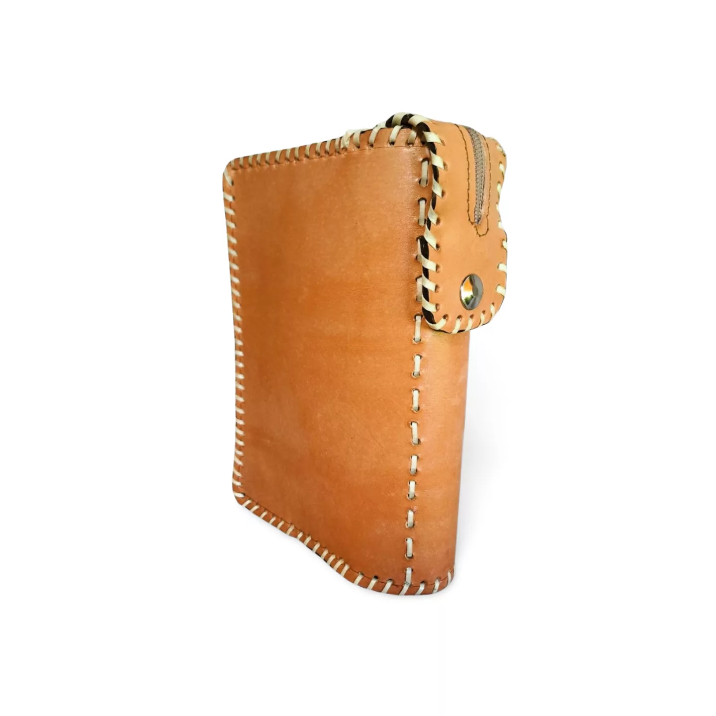 • Cosida totalmente a mano con tireta de cuero marrón oscuro, lo que garantiza durabilidad y un acabado artesanal auténtico.