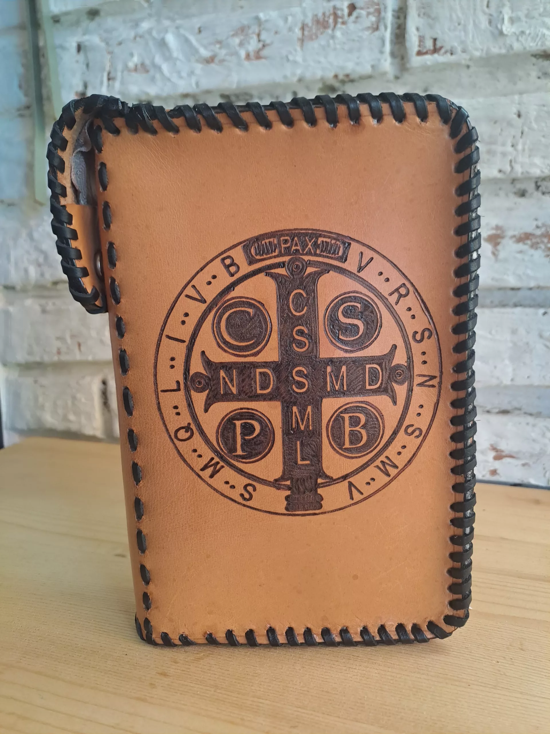 Y el grabado Medalla San Benito —único en cada pieza— convierte la funda en un sello personal, una huella irrepetible.
